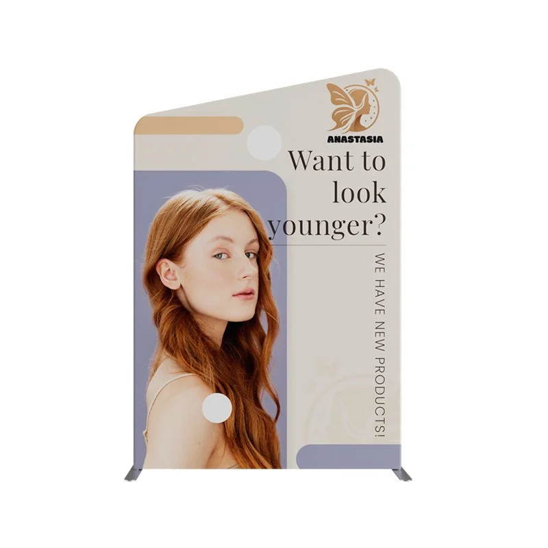 The booth includes 2 slope-top banner stand, 1 background , 2 modular tables, 2 counters, 4 LED lights, and 2 TV mounts. These components create a highly functional setup. The 20ft background wall, formed by three display and four 40W LED lights, highlights the booth and creates a bold visual effect. The two counters can serve as podiums for communication with clients or as storage for promotional materials. The TV mounts allow dynamic product displays, complementing the static visuals. The booth is easy to assemble -- simply connect the numbered tubes, slide the stretch fabric onto the frame, and zip up the graphic fabric to complete the setup. Plus, replacing the graphics gives the booth a fresh look, providing a cost-effective solution for ongoing trade exhibitions.