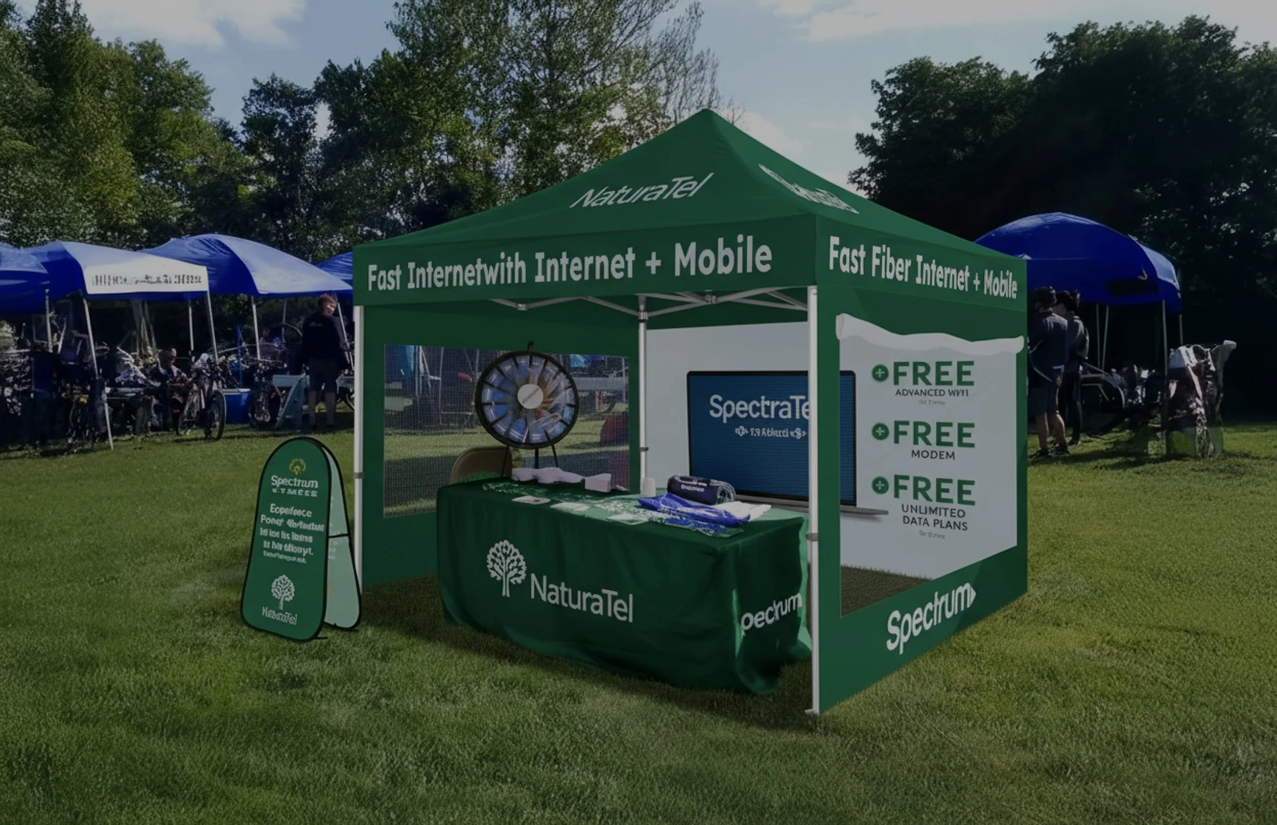 Create an inviting and professional space that draws visitors in. Our durable, weather-resistant tents are printed with vibrant, full-color graphics to ensure your brand stands out from every angle.